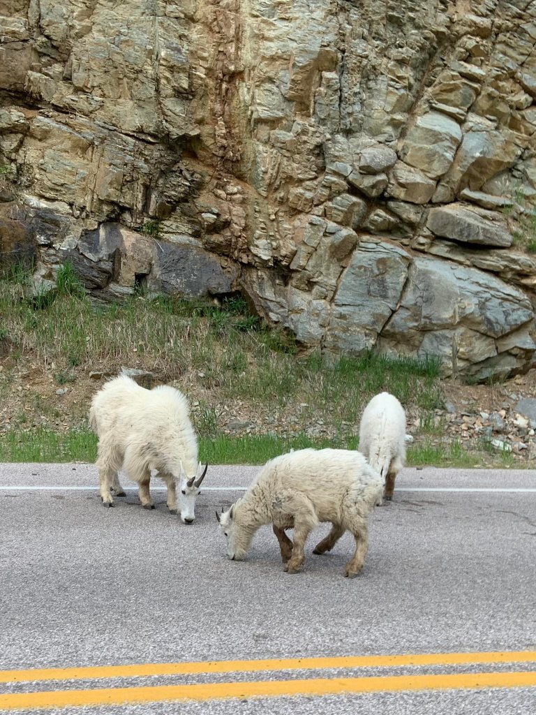 Later still, in the closing miles, on the highway through the canyon that led us back into Spearfish, I found the road ahead blocked again—this time by a foursome of mountain goats.