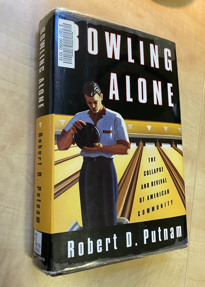 Book I’m reading now is Robert Putnam’s Bowling Alone. Written in 2000 (or a couple breaths before social media), it takes a studied look at the general decline in American community engagement over my lifetime. And it tracks the impact of that decline on our well-being.