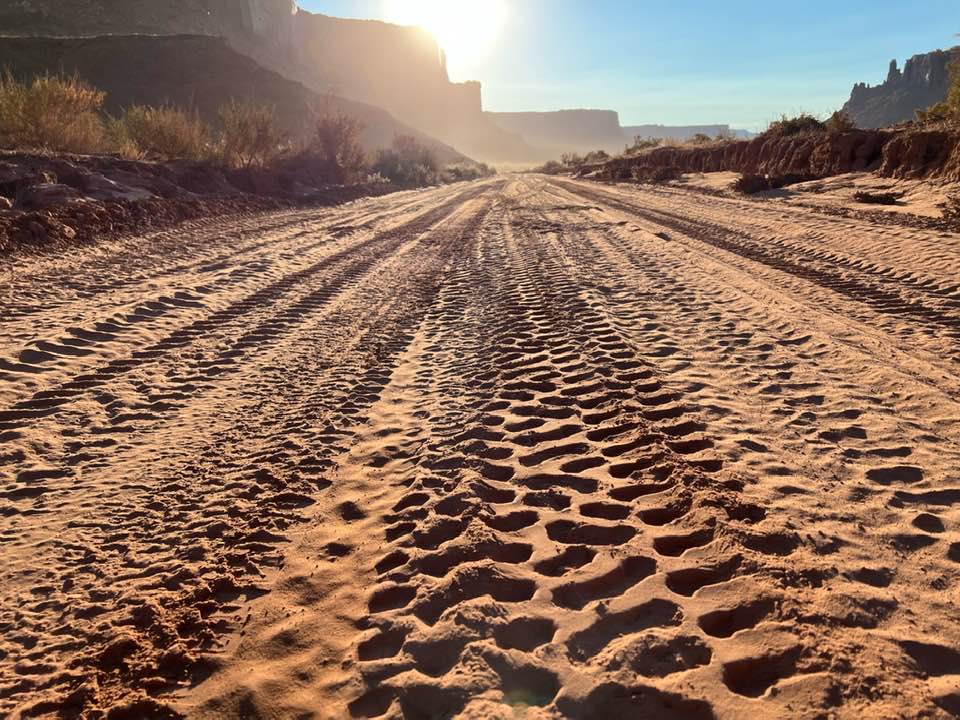 But I hadn’t counted on the ground itself shifting shape. As we snaked our way down into the canyon, we discovered that a drier year had worn the clay of 2021 into inches of fine sand in 2022. Rock and infinite dust. Rock and flour. Rock and face powder. Instead of gliding over familiar sections, we sank in and slogged. Mile after slow, powdery mile.