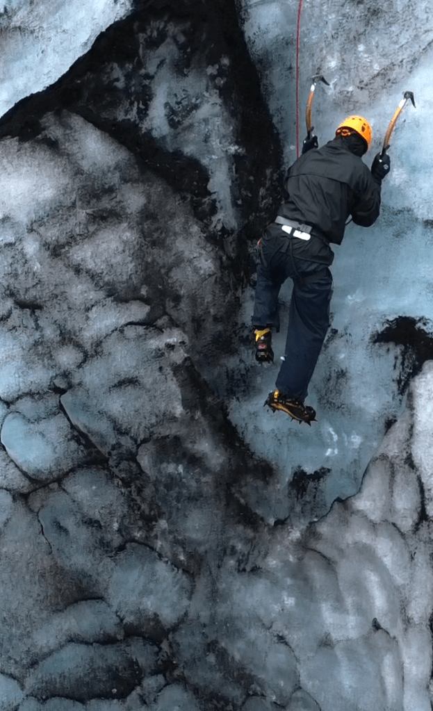 On our last full day in Iceland, we traded pedals for crampons—a new language for the feet. No climber, I put them on and slurred in all the ways you might predict.