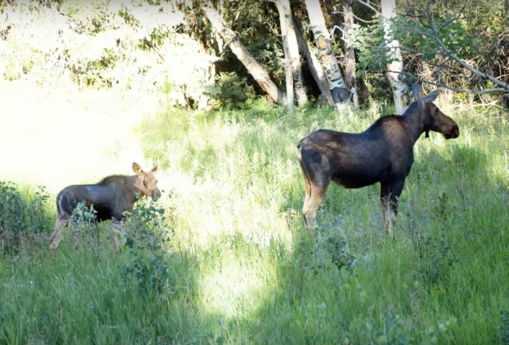 I told myself the situation wasn’t dire, but I should probably move along to my closest safe space: the car parked next to Ashley’s SUV. But that meant moving toward the moose family. I’d need to do that delicately in Cinderella slippers.